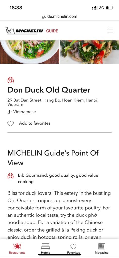 といいながら夕食時はホテル近くのDON DUCKという西洋人向けのアヒル屋さん。ここミシュランのビブグルマンです。