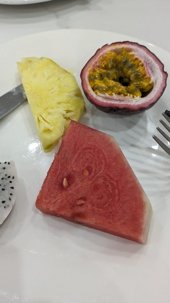 ここでの学びをもうひとつ。パッションフルーツって見た目がグロいからいままで食べてなかったのですが、今回から食べています。めちゃうまいやんー。ドラゴンフルーツやスイカより絶対美味しい。基本的にすっぱい系のフルーツが好きなのでパパイヤなんかもあまり食べません。パッションフルーツはきっと酸味のないいちぢく系だとおもっていましたが、実はとっても酸っぱくて美味しい!