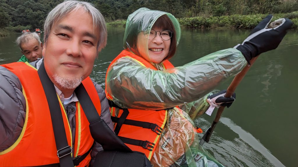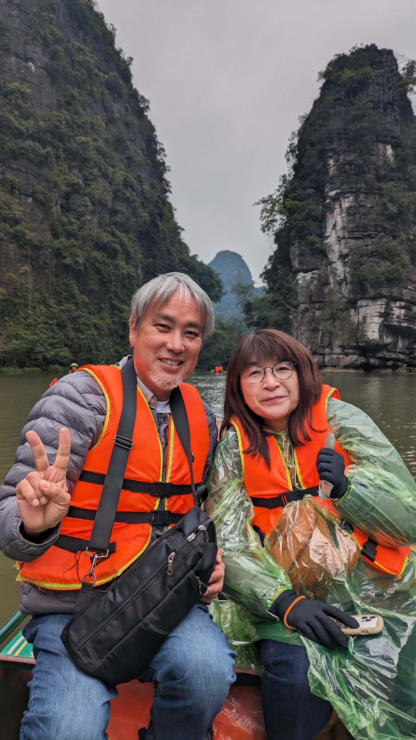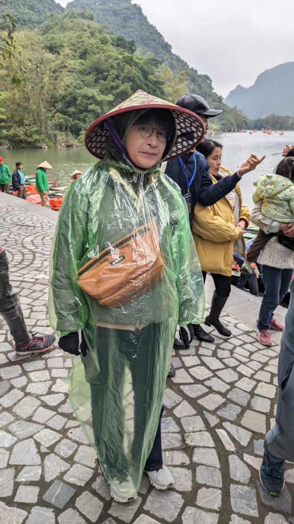 お次は船でニンビン省チャンアン周辺を2時間かけてクルージングです。ママはすっかりカッパです。(笑)