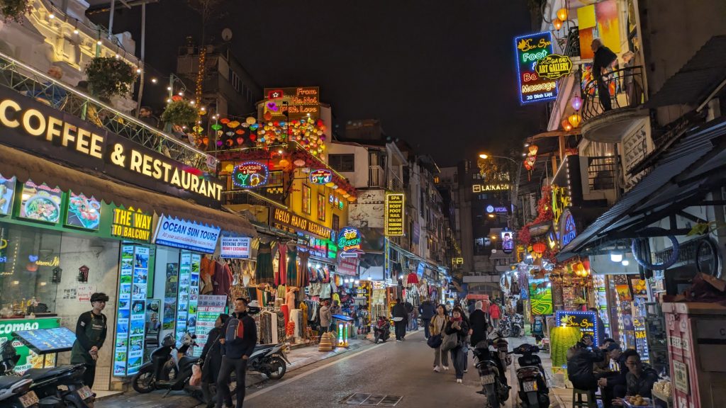 22時でも活気のあるハノイ旧市街。ぶらぶら散歩しました。たこ焼き屋さん発見!