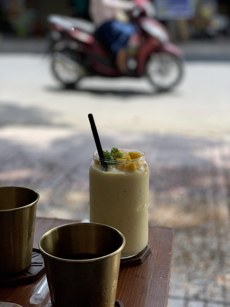ベトナムってどこもフレッシュジュースが美味しくて安い。これ、マンゴーのスムージー。もちろんその場で作ってくれて超うま! 350,000VND≒210JPY
