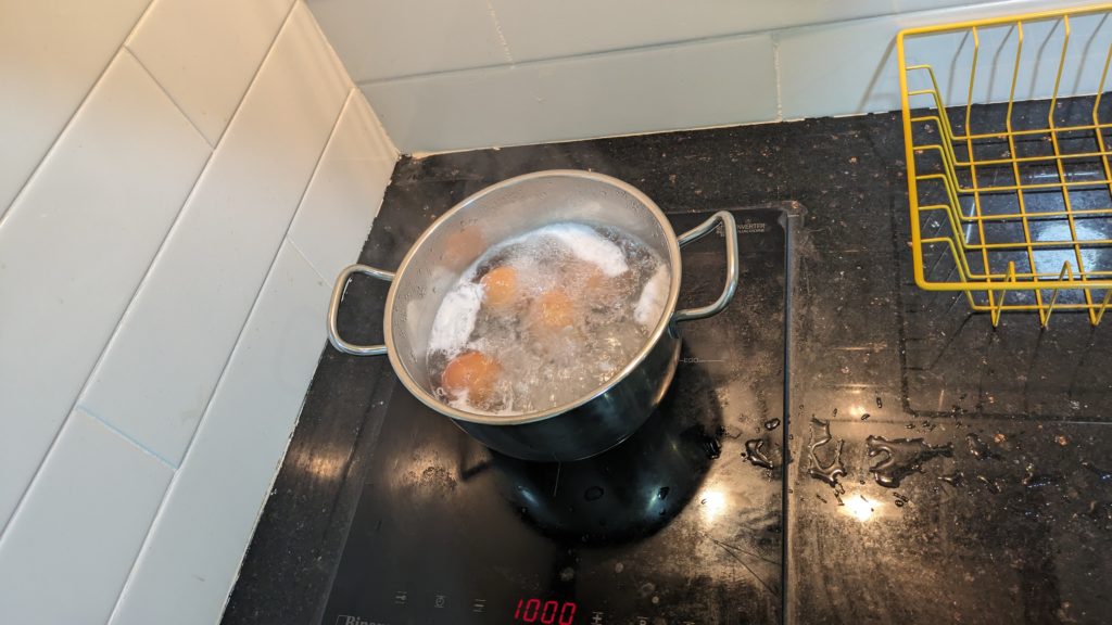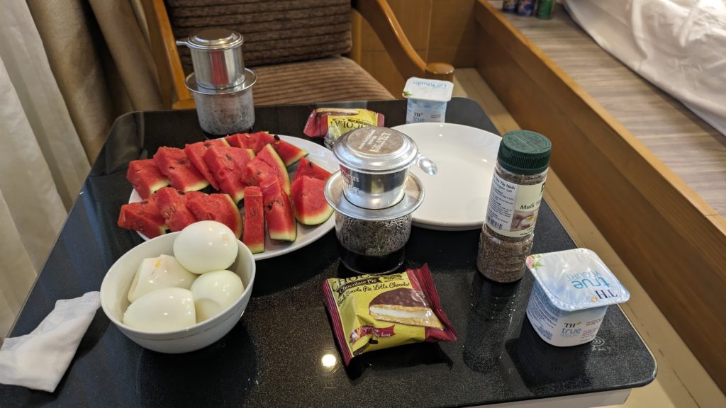 ホーチミンはアパートメントを借りているのでミニキッチンあります。流石に一ヶ月も外食ばかりしていると罪悪感あるので、朝から自炊。