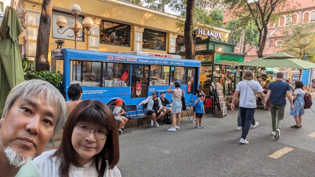 ブックストリートへやってきました。とってもおしゃれで垢抜けた本屋街です。ベトナムって想像を良い方向にどんどん裏切っていきますね。