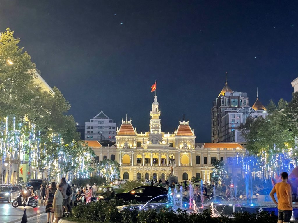 帰り道。ホテルまでの夜景をご紹介。先ずはさっきのサイゴンオペラハウスを出ました。