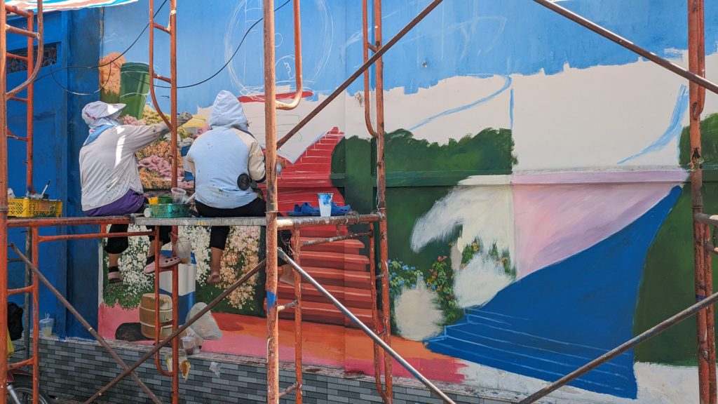 ゆっくりと準備して外出。学校の塀に絵を描いていました。ま、このシーンは日本でもありますけどベトナム感あるわー。