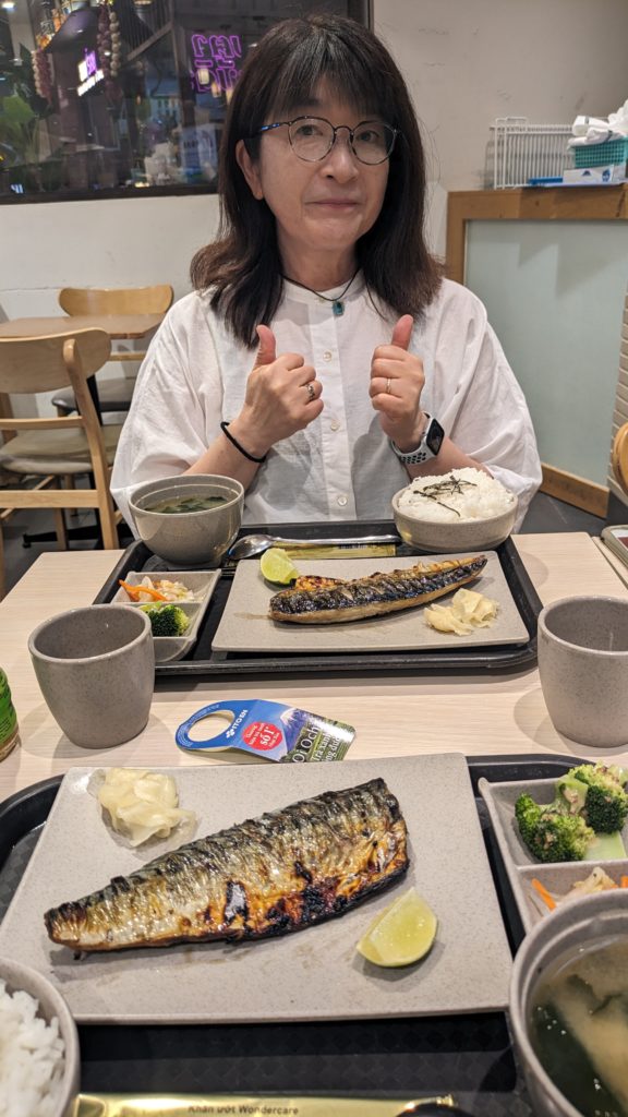 夕食は同じくデパ地下でサバの塩焼き定食(笑)