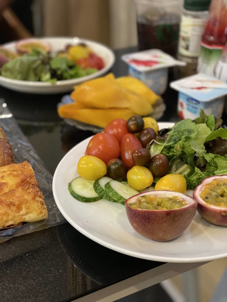 2024/3/30(Sat)。おはようございます。今日はヤマザキのパンがあるのでサラダとたっぷりトマト、パッションフルーツとマンゴー、ヨーグルトで充実の朝ごはん。ちゃんと野菜やフルーツを補給しております。