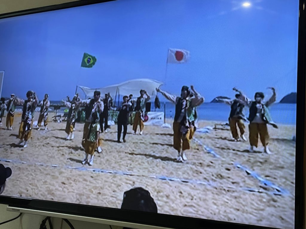 今日明日とフレスコボールの大会(高松、津田の松原)をやっています。Liveしてくれているので昼休みまで見てました。よさこいのハーフタイムショーです。