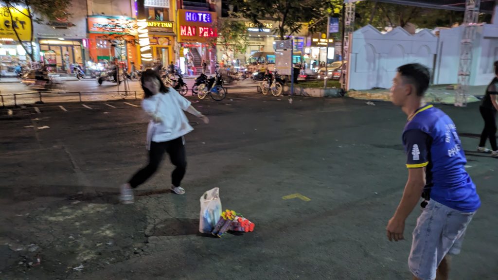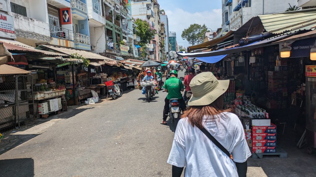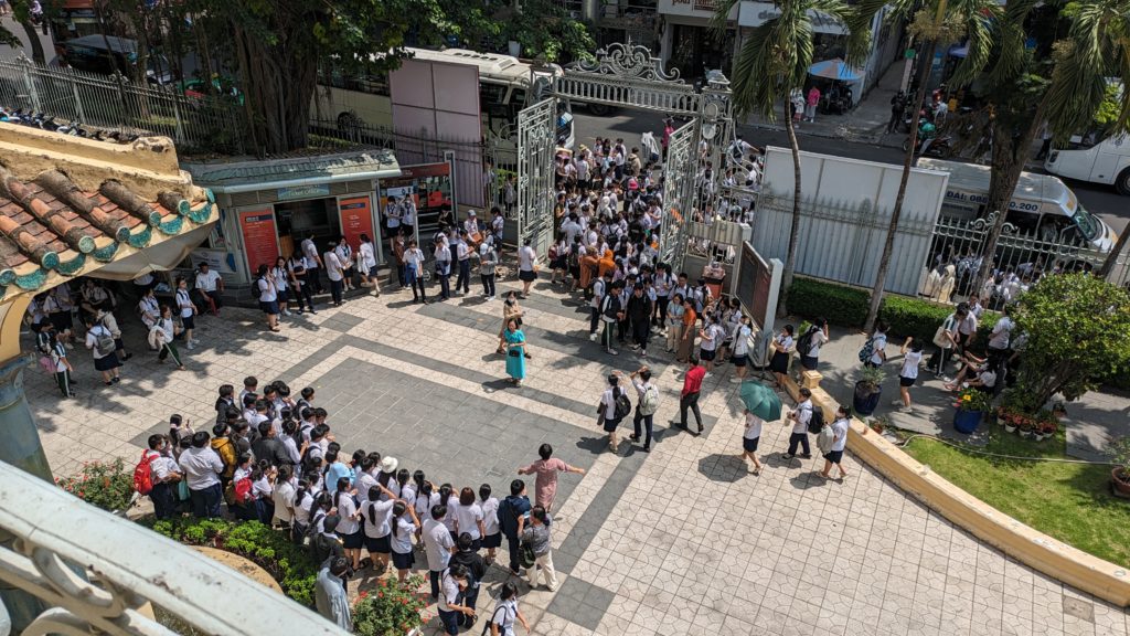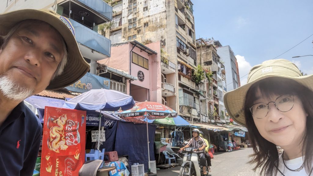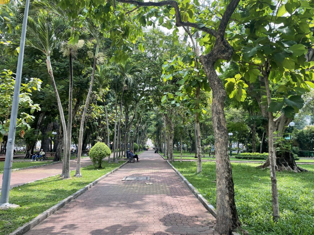 お昼休みまで見ましたがベトナムはまだ10時。ホテルの前は長細い公園です。のんびりお散歩。