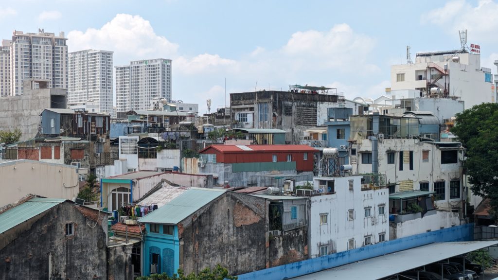 美術館の隣はこんなベトナムらしい旧市街とその奥には新都心のビル群。