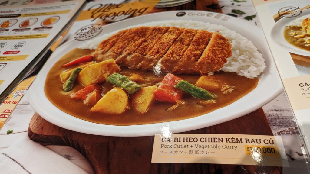 ココイチとして日本と違うのは、①ビーフソースが選べない②ソース増量ができない③ビール高い50,000VND≒300JPY④とんかつの高い方がない⑤ちょっとぬるかった⑥水が有料⑦スタンダードが辛くない(諸説あり)ぐらいですかね。福神漬は同じようにありました。
