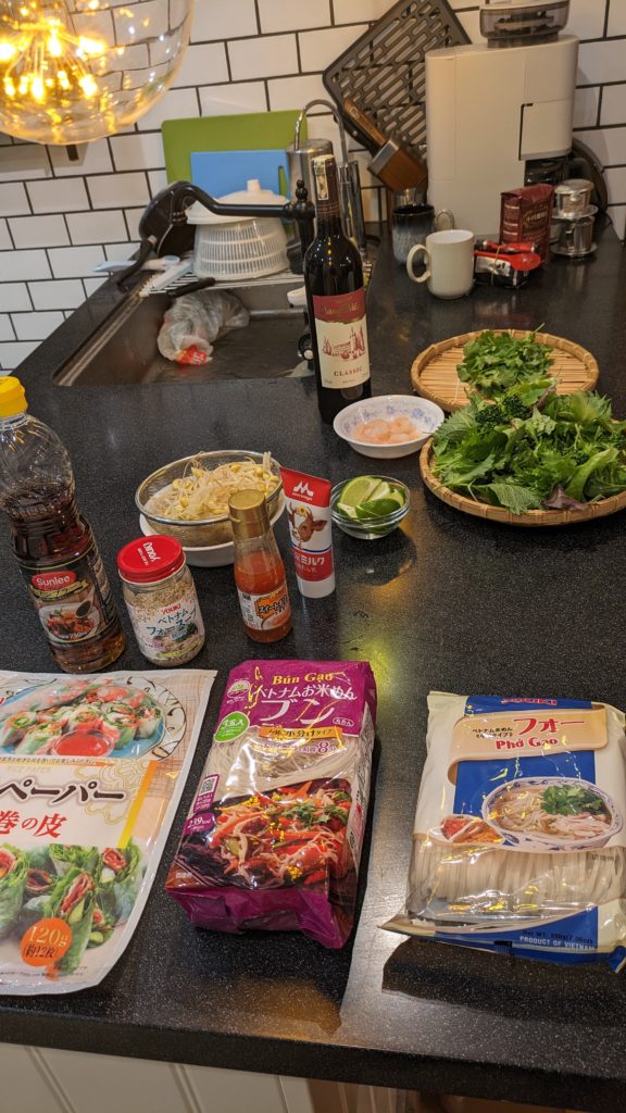 次の日は帰ってきた情報を得た友人たちが来てくれました。「ブンチャー」「フォーガー」を作っておもてなし。いろんな話を聞いてくれて楽しかったなぁ。