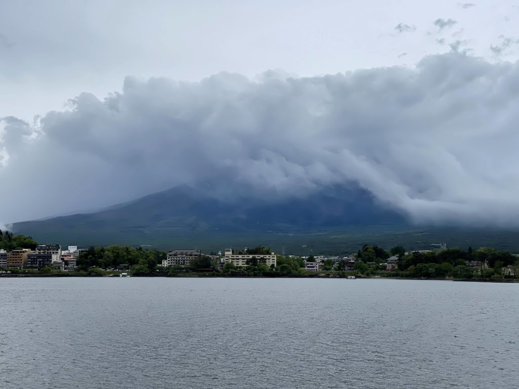 河口湖。今日は朝から雨なので富士山拝めるかなあ。でも頑張る。
