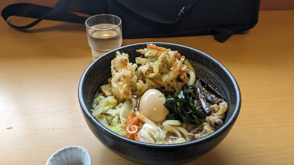 麺硬め。濃い味でぬるいお出しのおうどん。ま、つぎはないな、関西人は。