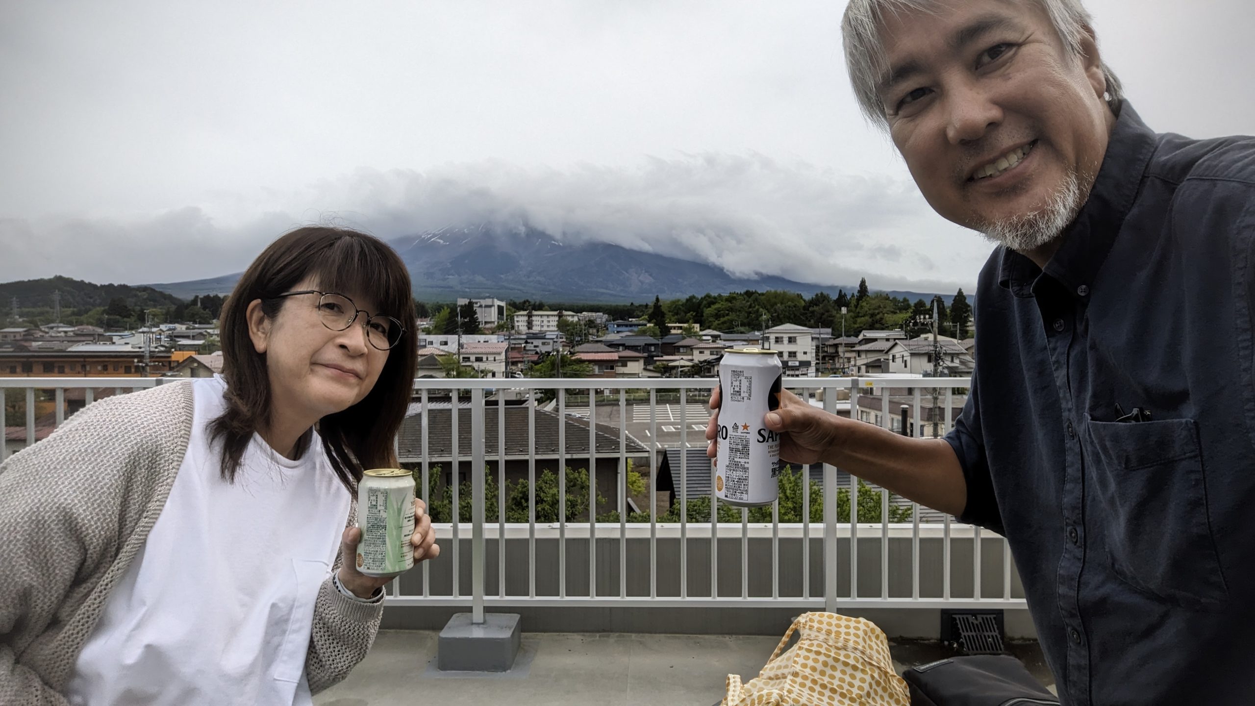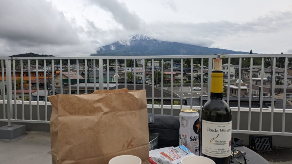 屋上からばっちし富士山が見られるとあって、ワインまで買い込んで屋上でまったりしました。雨もあがって期待が高まります。