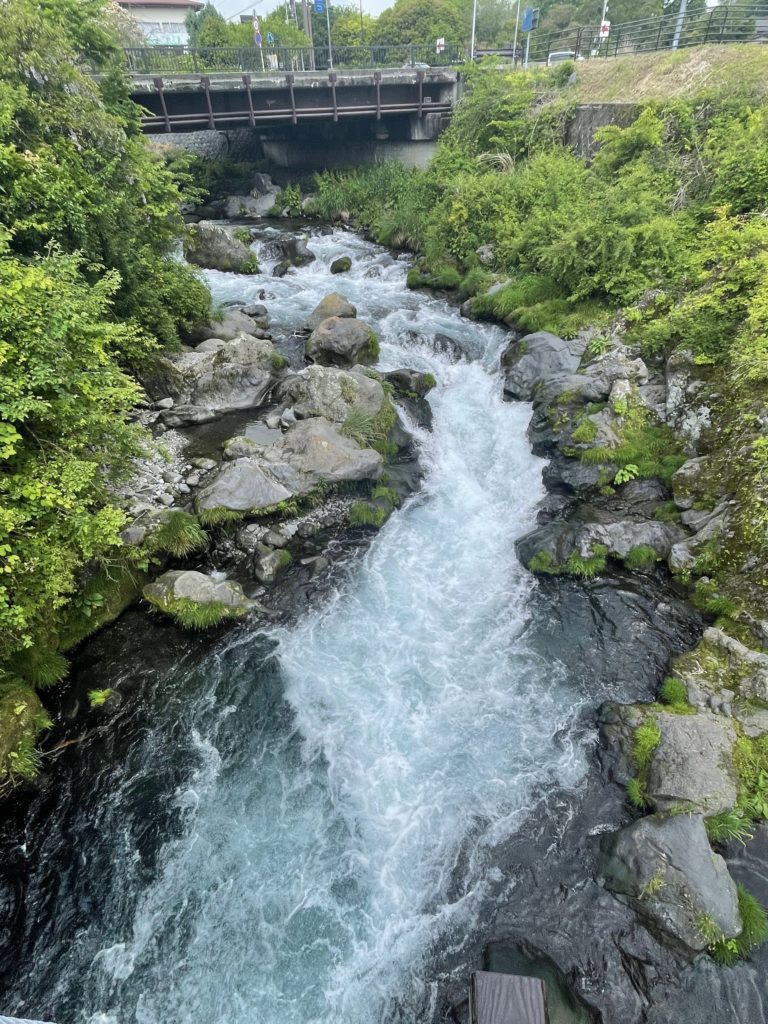 その上の流れ。富士山の湧き水が流れているのですごい透明度ですね。