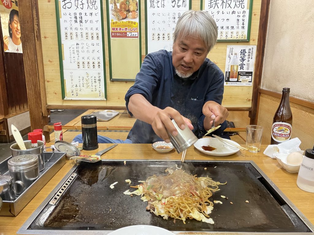 晩ごはんはホテル近くの家系鉄板焼き屋さん。富士宮やきそばをまたいただきました。うまいー!