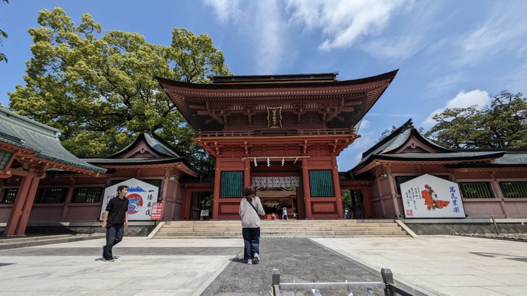富士山本宮浅間大社(ふじさんほんぐうせんげんたいしゃ)へやってきました。富士山、よく見えていました。
