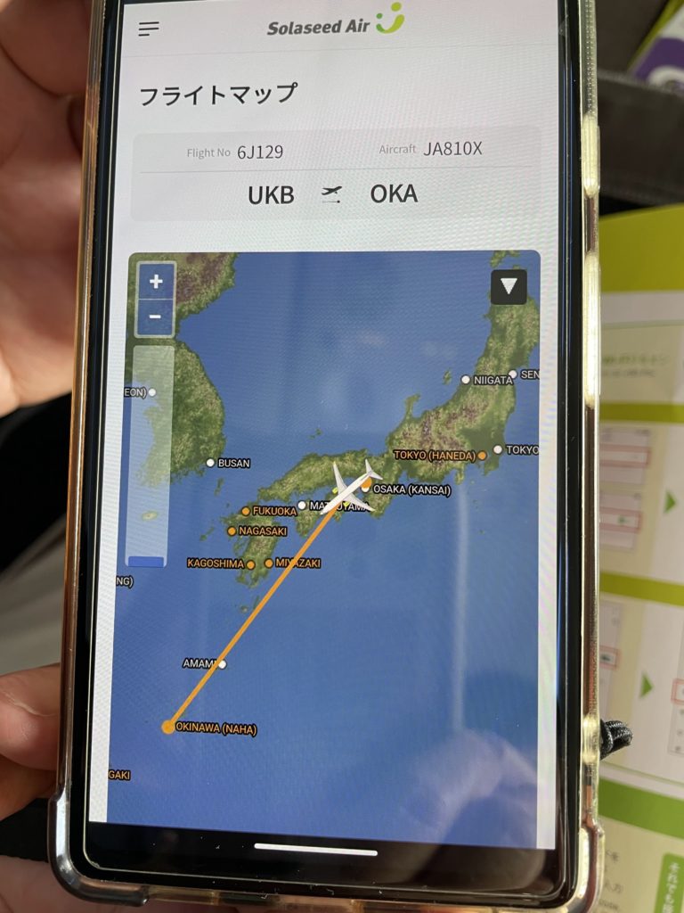 いつも家から見ている船が沖縄で、しかも飛行機から見られるなんて最高やん。