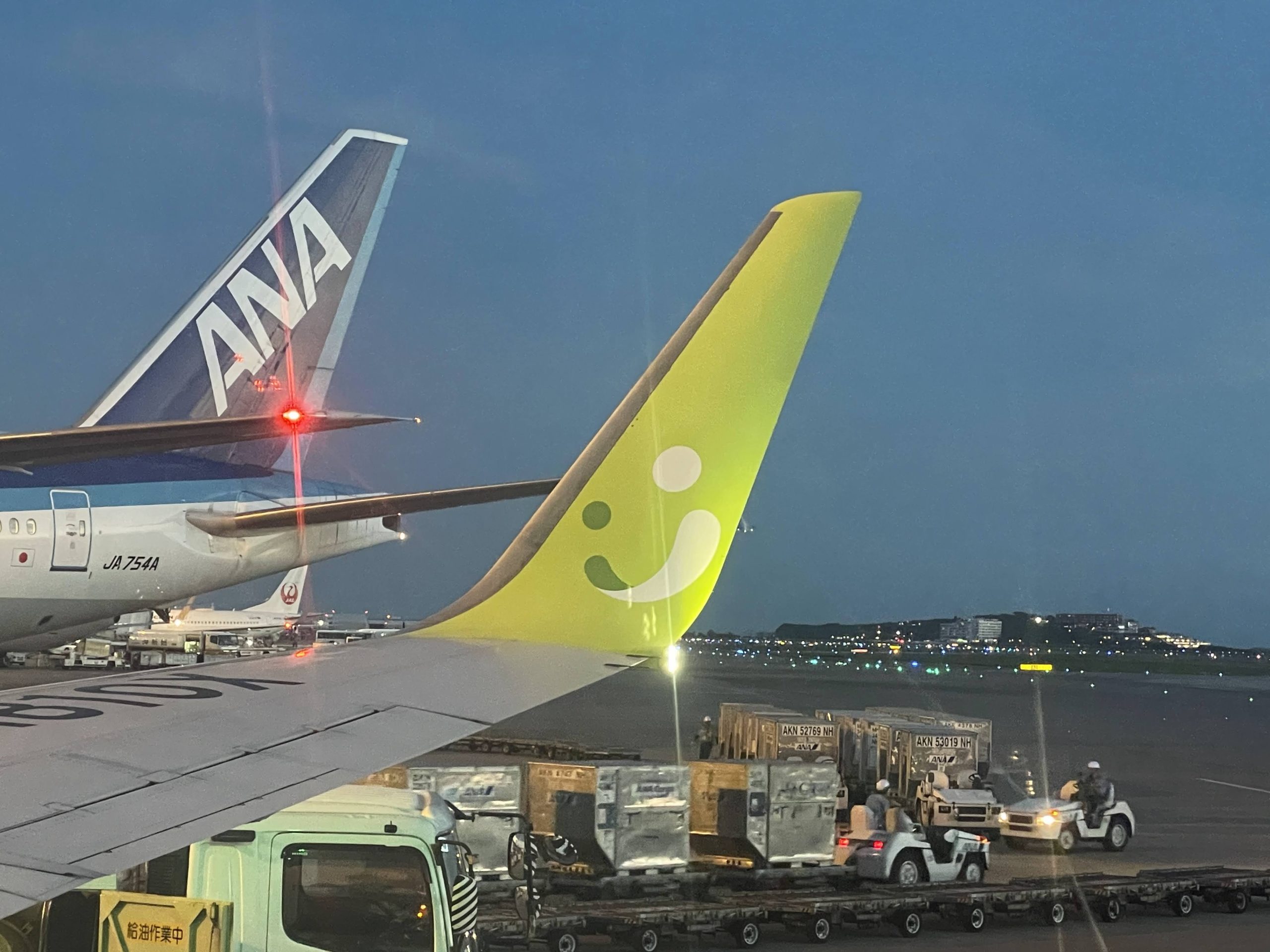 無事着陸。我らのソラシドエアとANAがならんでます。