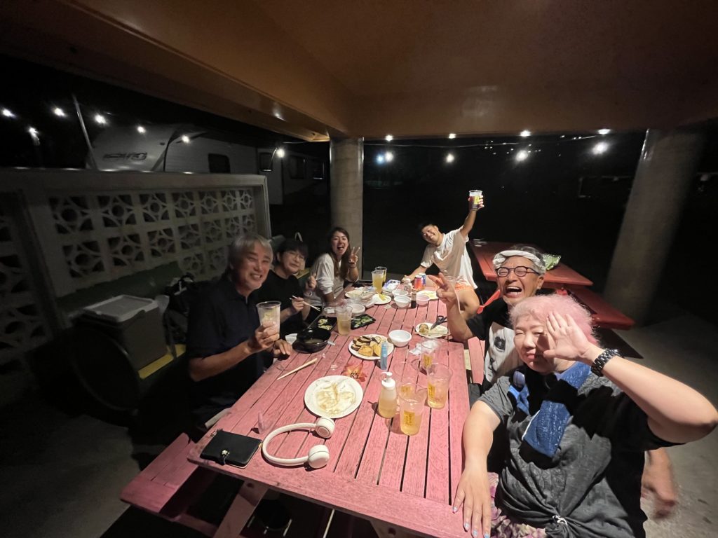 到着後、レンタカー借りて今夜の宿についたのは22時をまわっていました。それから1時間ぐらい仲間のBBQに合流しました。(写真別途挿入予定)