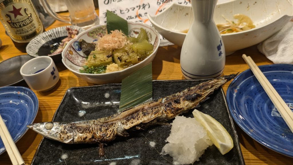 新潟駅前のリブマックスにチェックインできました。近所のローカル居酒屋で夕食。今年初もののサンマ!でもやせ細って感動はなし。