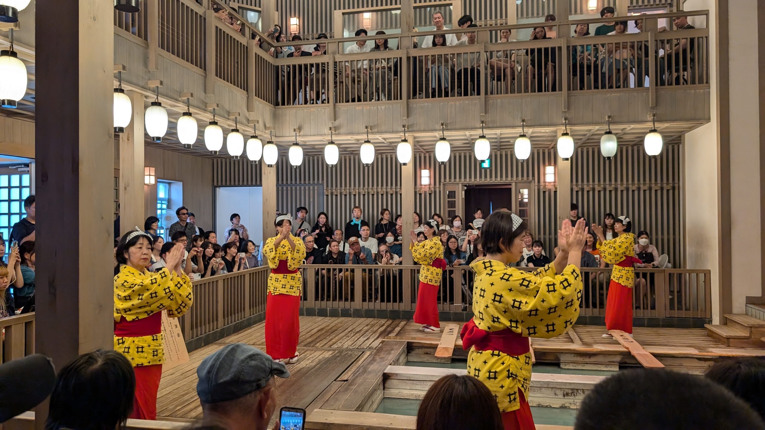 草津温泉にやってきました。先ずは湯もみショーを観ます。あの有名なやつ。♫草津よいとーこー、一度ぉはぁおいでー、どっこいしょぉ♫ てやつね。
