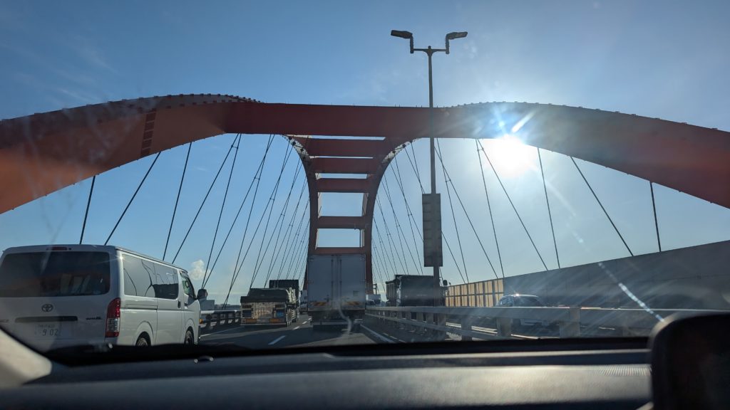 でっかい橋をいっぱい渡って阪神高速湾岸線を南下します。