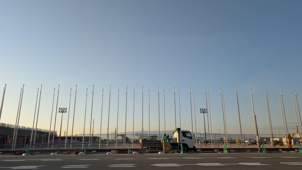ここに万国旗がはためくんでしょうね。