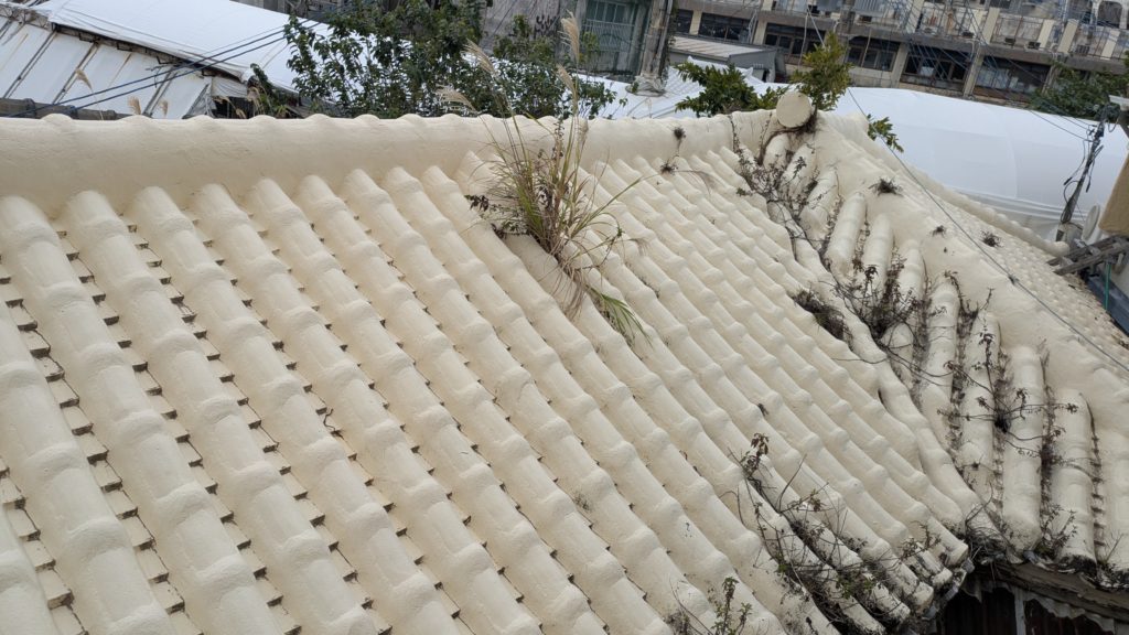 2025/2/6(木)。沖縄二日目です。昨夜は那覇国際通りすぐのMr.Kinjoでした。三階だったんですが、玄関出ると隣の家の屋根が丸見え。沖縄風にがっちり固められた瓦の仕組みがよくわかりました。草生えてるけどね。