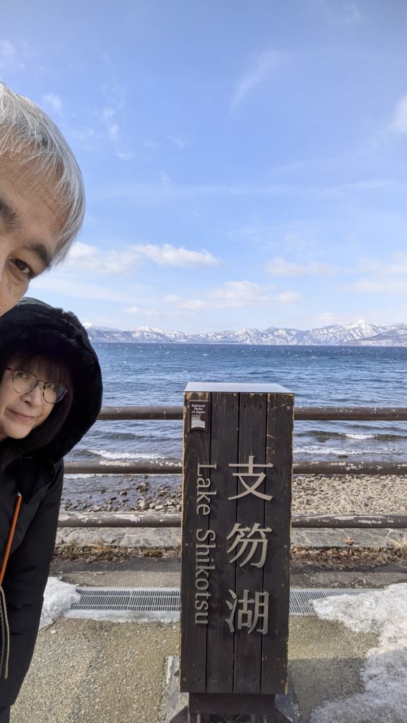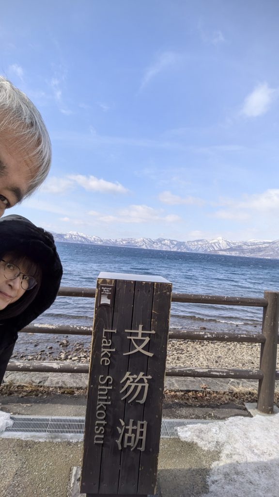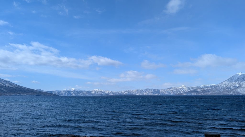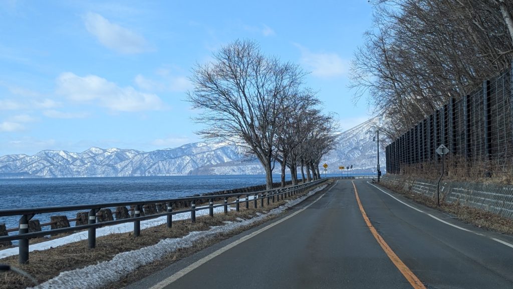 支笏湖沿いの道。最高の景色です。C国の人はドローンで遊んでました。