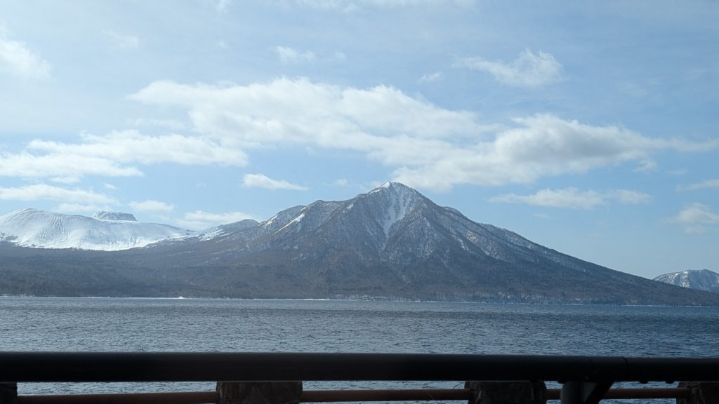 展望台。湖面近くから山を見るほうが綺麗。たぶん光の関係だと思いますが。
