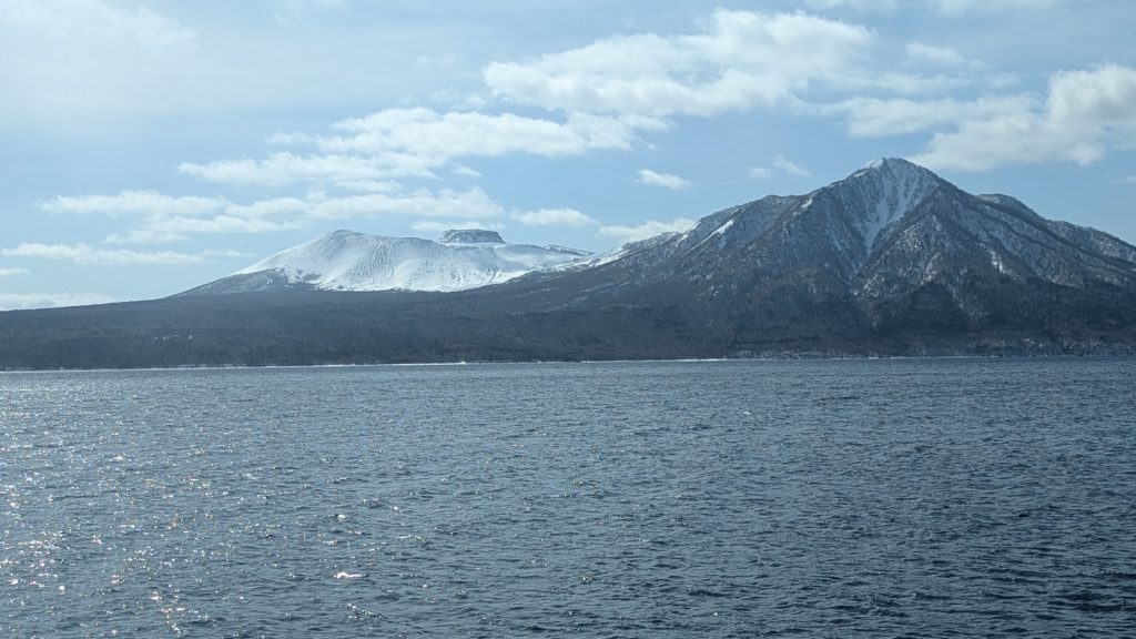 山の名前別途。これを記載している今、フェリー中でママはイヤホンしてNETFLIXみてるから聞けない。