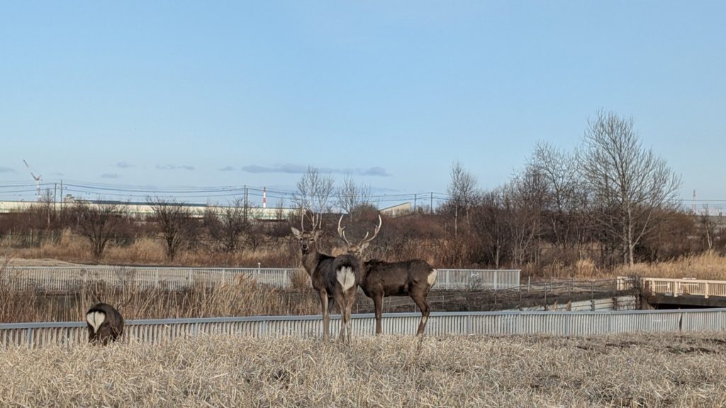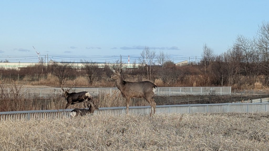シカに会えました。しかはわりと会えるのですが北キツネには会えない。冬はいないのかな?