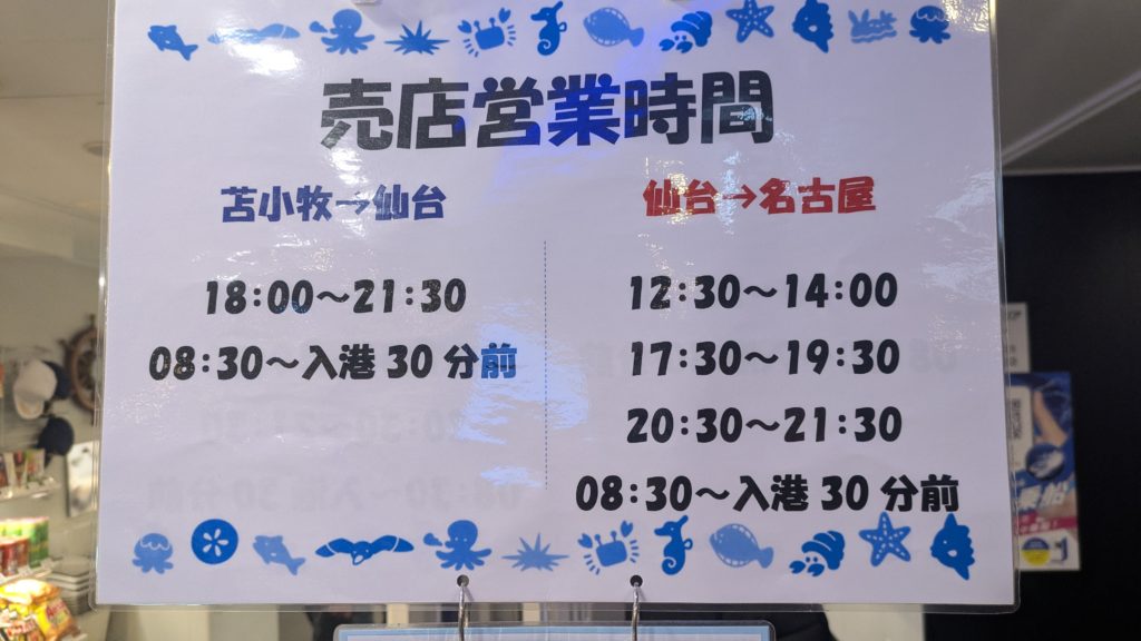 フェリーの楽しみは映画・売店・大浴場です。売店は営業時間が限られるので注意。