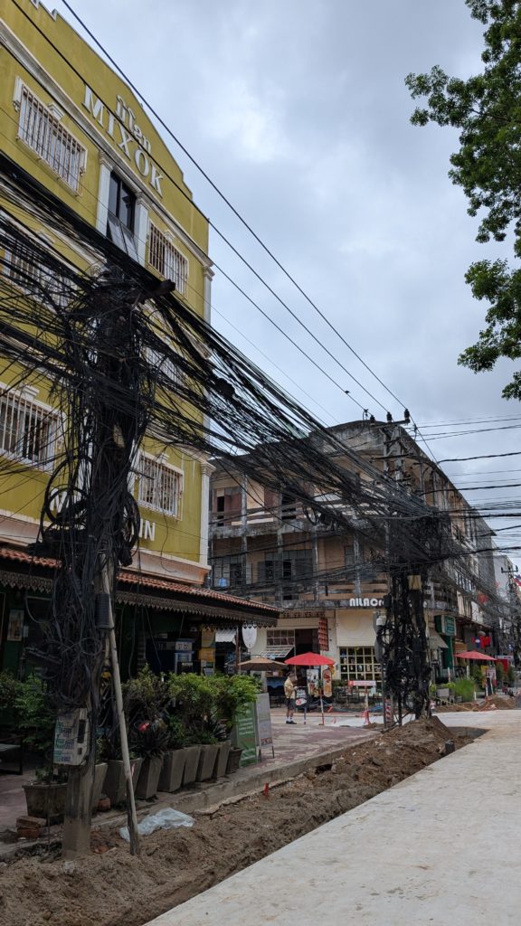 この電線のカオスさは半端ない。見たとこほとんど光ケーブルだから個別にネット引くのに計画なくどんどん増やしていってるんやろね。古いのはそのまんま放置で。
