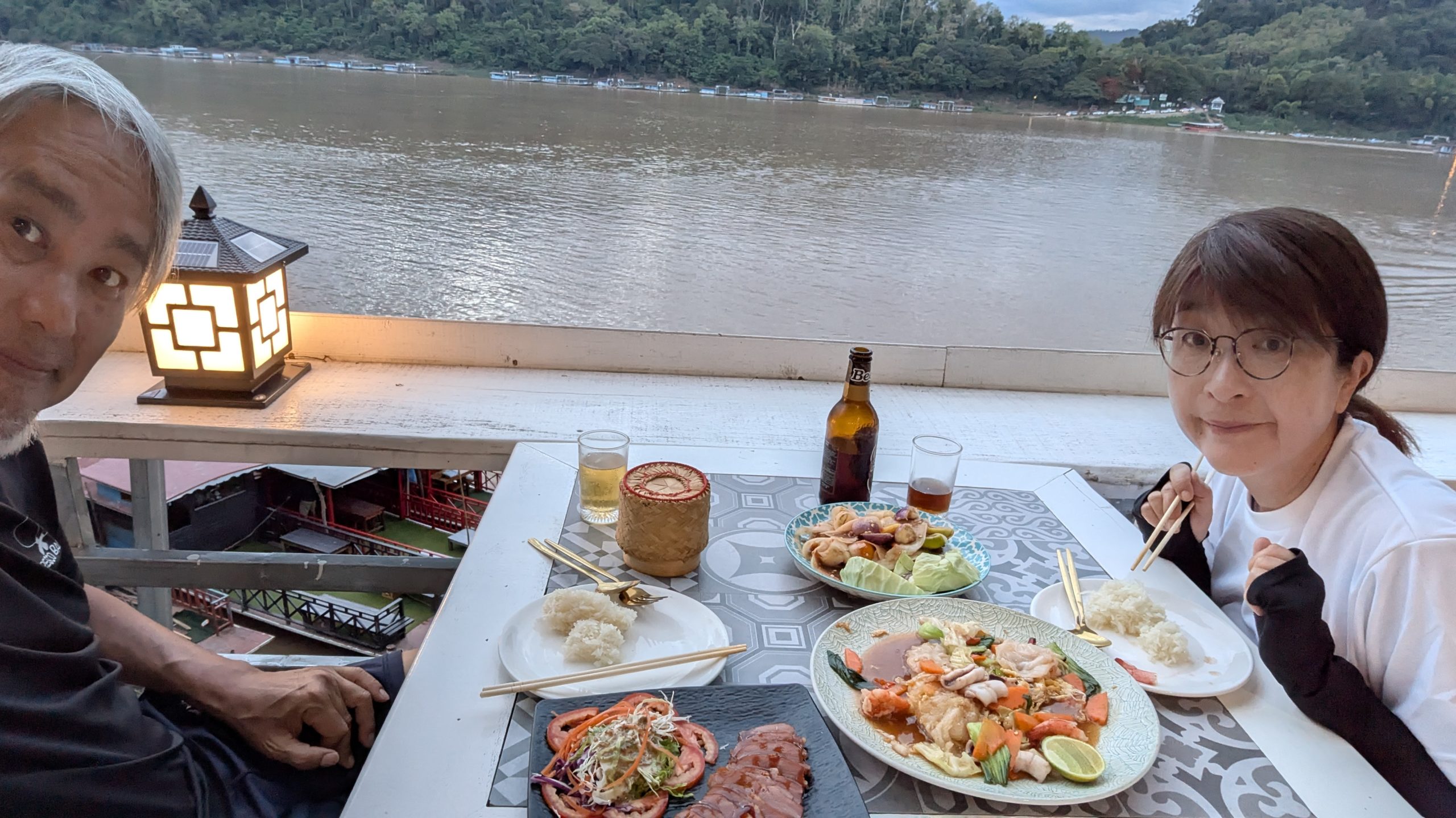 夕食、ルアンパバーン最後の夜なので、なんか気の利いたワインが飲める店かなあとも思いましたが、結局ホテルの目の前のカフェ。店員さんもみんな覚えていてくれたのでお別れです。
