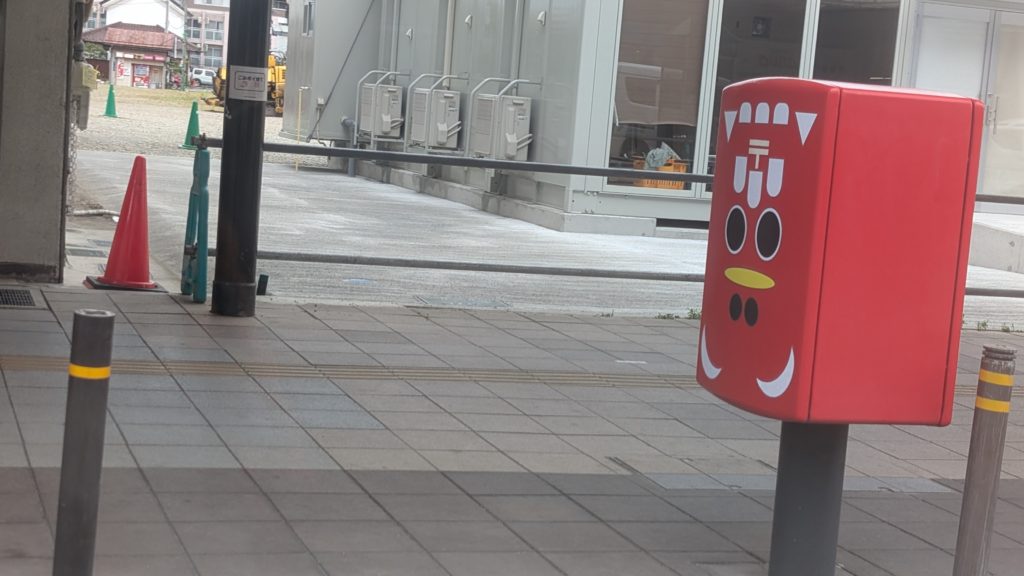 会津若松のポストは赤ベコ装飾されてました。