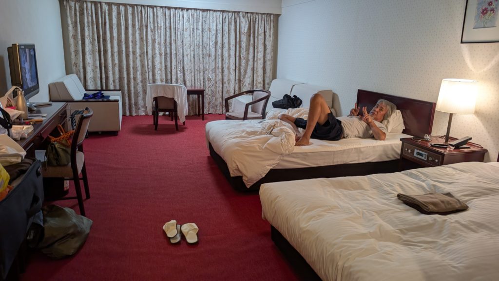 というわけで今日もおしまい。すばらしい温泉があって部屋も広くって最高。ラウンジや晩御飯でもアルコールフリーで最高です。大江戸温泉のそれとおんなじノリですね。