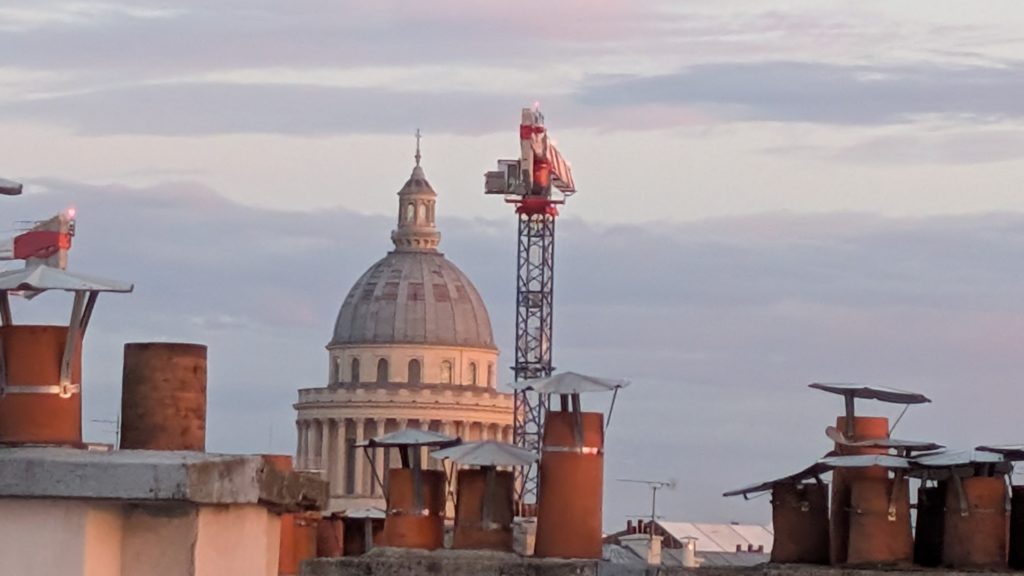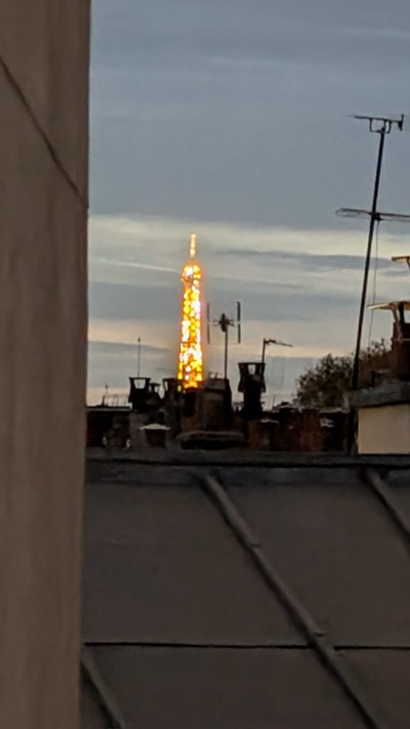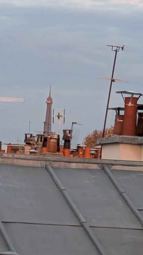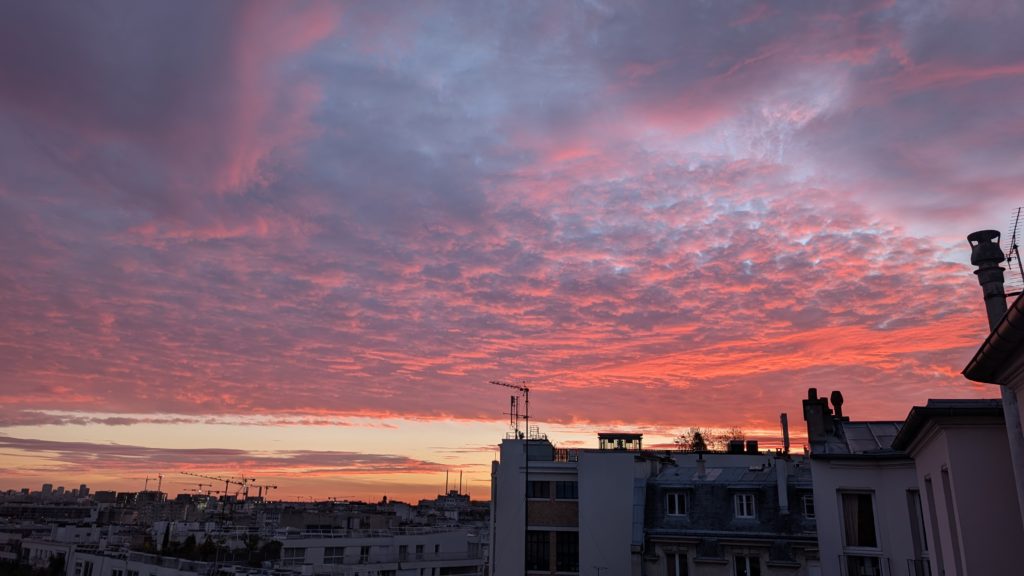 2025/11/5(水)。パリのエアビーで目覚めましたー。東向きなので朝焼けー!美しい。