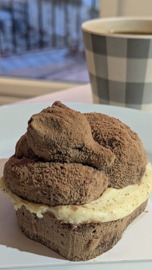 朝食は昨日友人にもらったケーキ。これがすごかった。なんとYANN COUVREURのきつねケーキ。パリで最高のパティシエです。うまーっ!