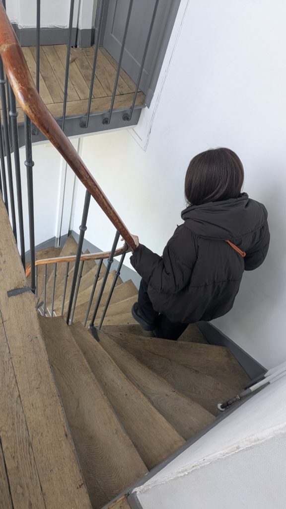 秘密基地の屋根裏部屋から出るには秘密の螺旋階段。マジで秘密基地感あって楽しい!20kgの荷物移動は苦しいけど。(笑)