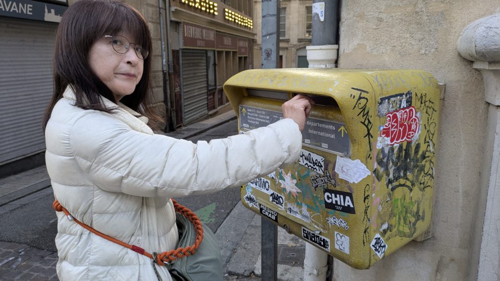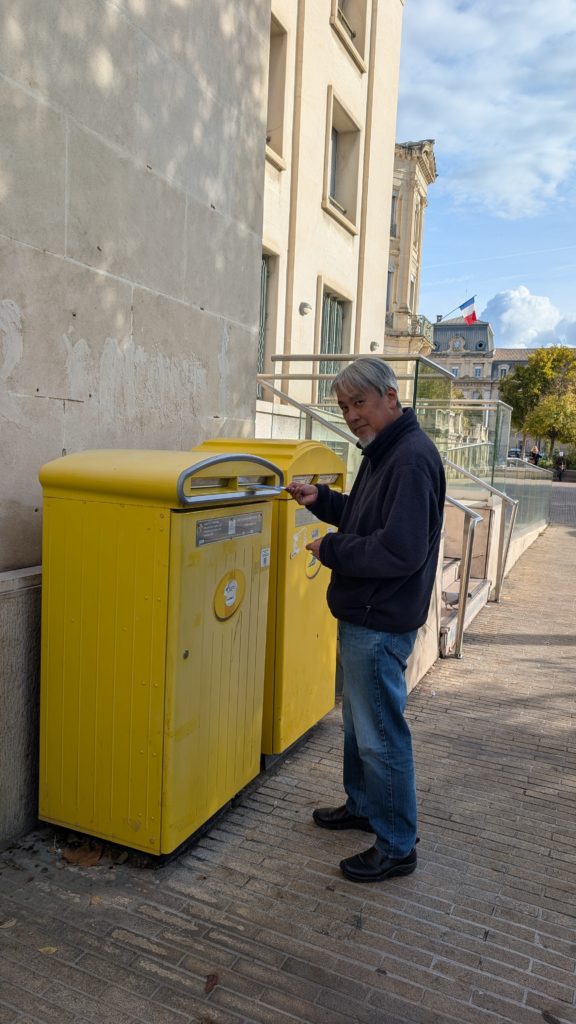 2025/11/12(水)。ポッキーの次の日ですわ。今日は終日アヴィニョンを観光します。ま、めちゃゆっくりな日です。例えるなら土曜の朝、9時に起きて朝ごはんゆっくり食べてちょっと明石市内を散歩しよかレベルの朝。まずは愛する息子夫婦に絵はがき投函。