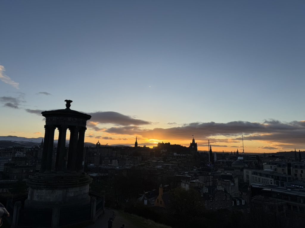 エディンバラの短い日中が終わりました。今の時期、日の出は8時、日の入りは16時です。たった8時間しか日中がないのは残念ですね。しかも今日は快晴だったのに気温は最高でも4℃。めちゃ寒でした。