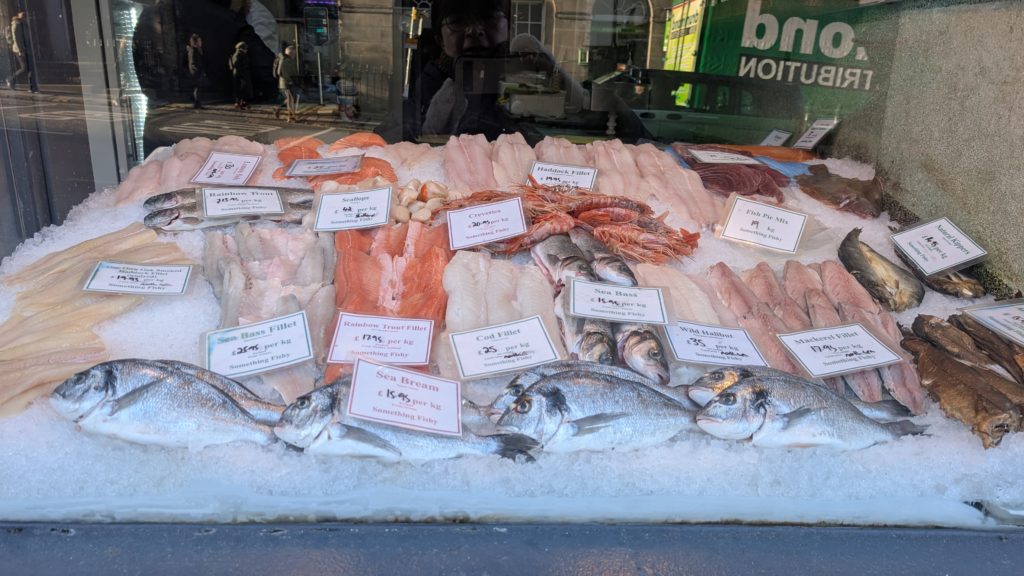 近所の魚屋さん。さすがに海沿いということもあって、きれいな魚が並んでいます。きっちり調理されています。