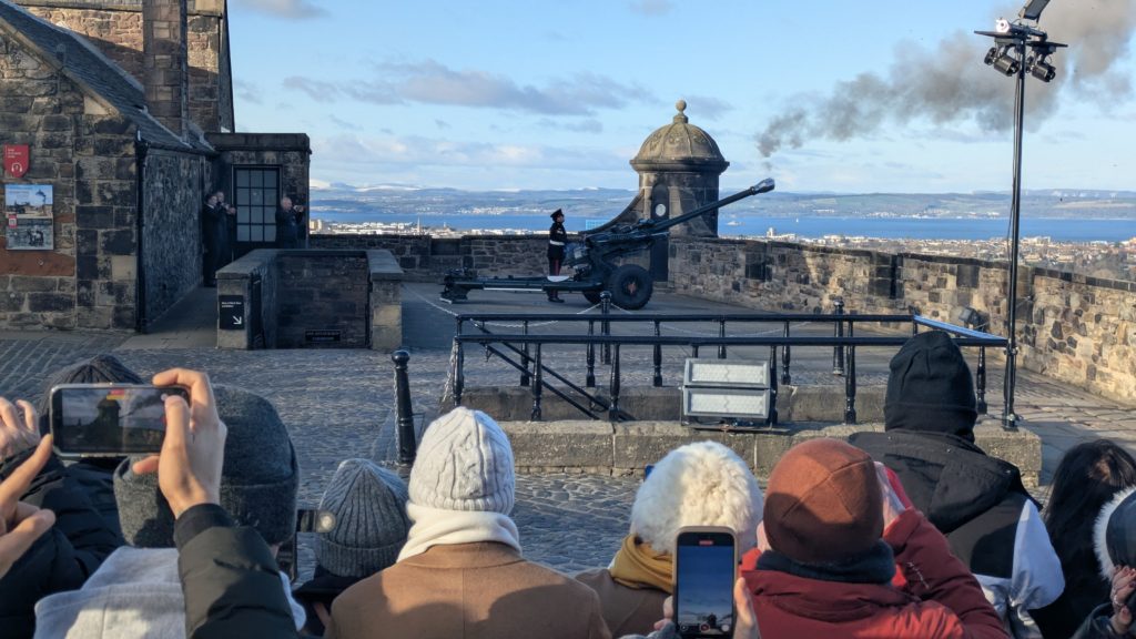 これです。ちょうど、「ワンオクロック・ガン」で発砲されたばかりの写真。このイベントは日曜を除く毎日午後1時に空砲を撃つ伝統的なイベントです。