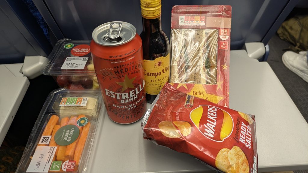 今日の5時間列車旅のお供。人参のスティックとかフルーツもあるよ。