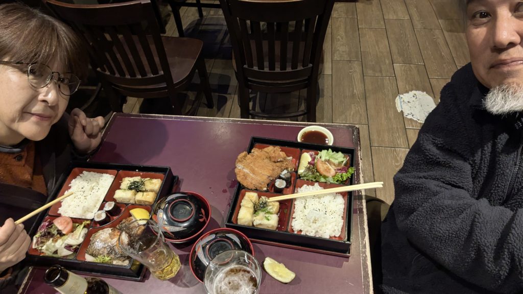 そして夕食に繰り出しました。なんと、和食をチョイス。最後の夜はパブでゆっくりしようと行っていたのにね。ま、美味しかったけど。