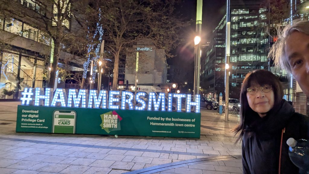 ハマースミスでイギリス最後の夜を過ごします。