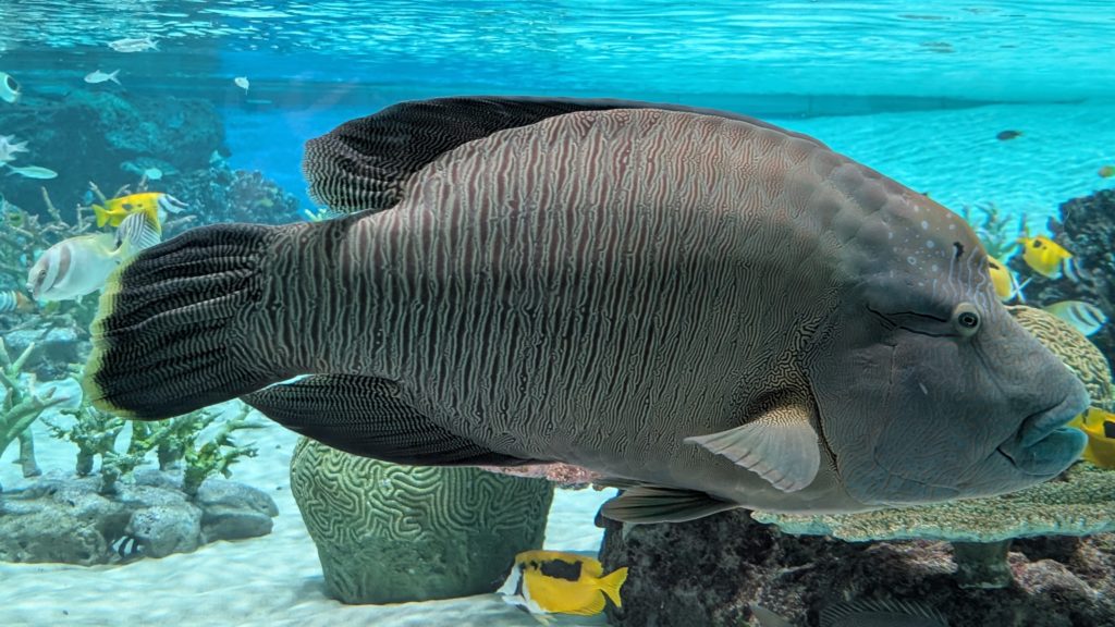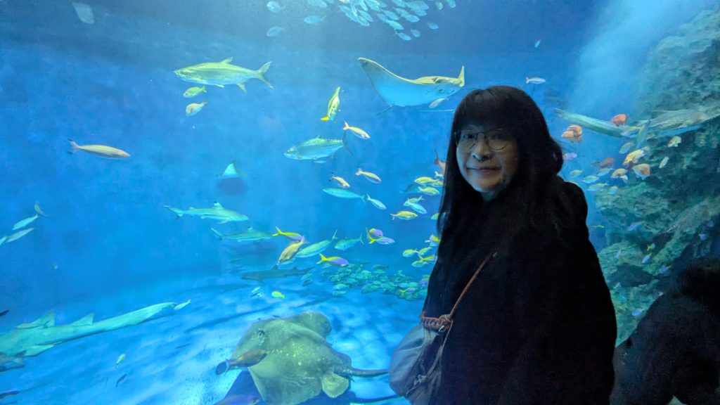 そして入場前のエリア。なにこれ。イワシのように大きな口を開けてプランクトンを捕獲中。グロテスク。ってかエラの中が全部丸見えで恥ずかしいぞ。
